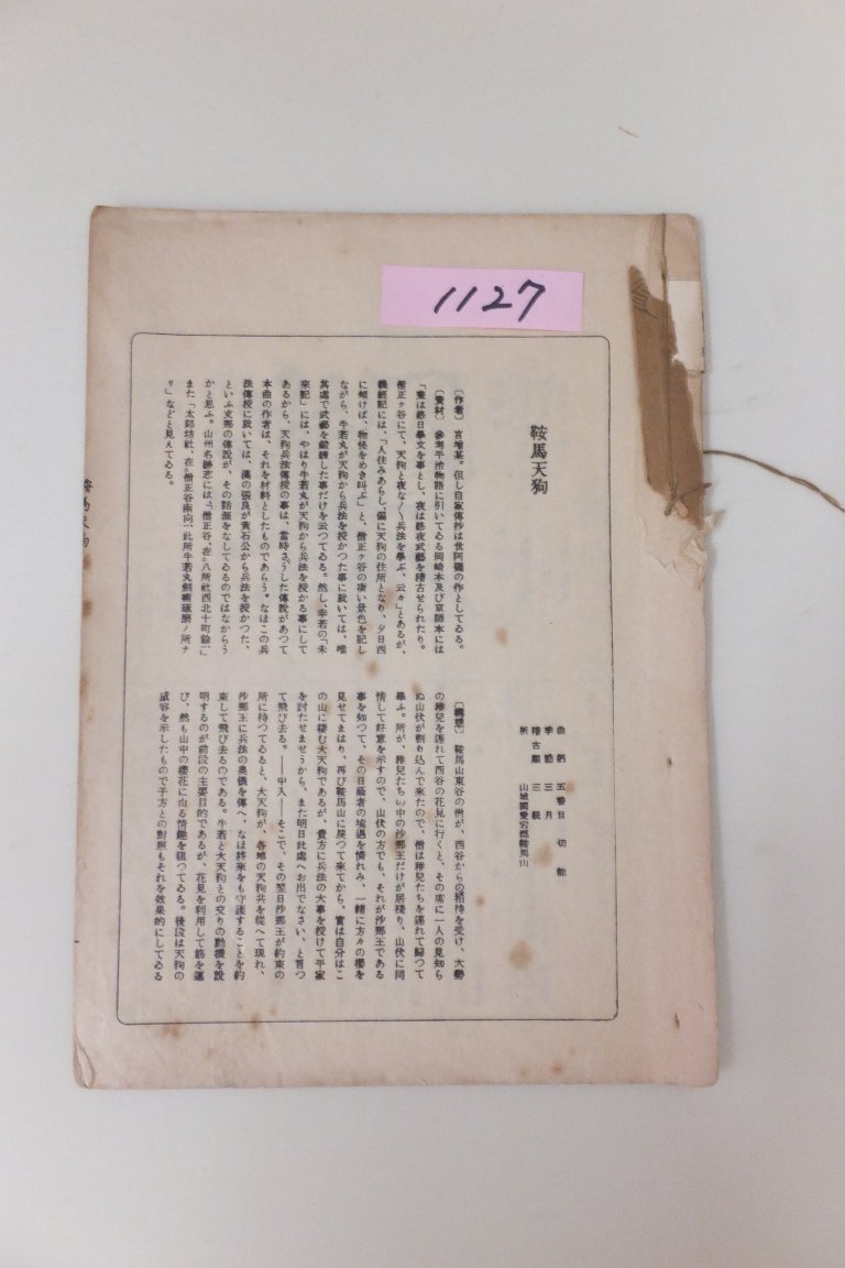 商品: 鞍馬天狗(観世流) 商番: 001127 価格: 1,000円 備考: 赤で書き込みあり。表、の紙なし。 数量: 1 2 3 4 5